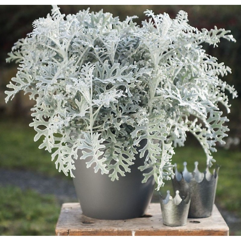 Цинерария "Снежок" - это удивительное растение с серебристо-белыми листьями, которое привлекает внимание своей изысканной красотой. Его стебель тонкий и изящный, достигает высоты 20-25 см, что делает его идеальным для групповых посадок. Листья цинерарии имеют необычную форму и придают растению особый шарм.