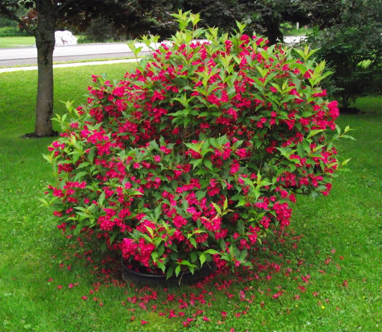 Саженцы Вейгелы гибридной Bristol Ruby (Бристол Руби) очень популярны среди разновидностей этого кустарника. Крупномер достигает 2,5 метров ввысь и имеет пышную крону. Этот сорт быстрорастущий, его побеги свисают. Время цветения Вейгелы гибридной Bristol Ruby приходится на середину лета – июнь и июль. Соцветия состоят из 3-5 цветков, имеют колокольчатую форму и рубиново-красный цвет. Листья растения долго держат цвет и опадают только поздней осенью. Они имеют эллиптическую форму. Условия для хорошего роста: