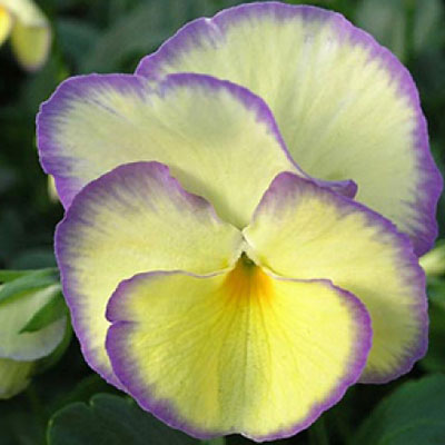 Рассада виолы (фиалки) рогатой Etain высаживать рекомендуется в умеренно влажную, рыхлую почву, на солнечные участки. Многолетник морозостойкий, не требует ухода. Формирует компактные кустики из прикорневых листочков. В высоту достигает до 25 сантиметров, а в ширину – до 30-35 сантиметров. Главная особенность сорта – уникальная окраска. Цветочки виолы рогатой Etain окрашены в светло-желтый цвет и обрамлены фиолетовой каемкой без четких границ. Особенно эффектно многолетник смотрится большими группами.