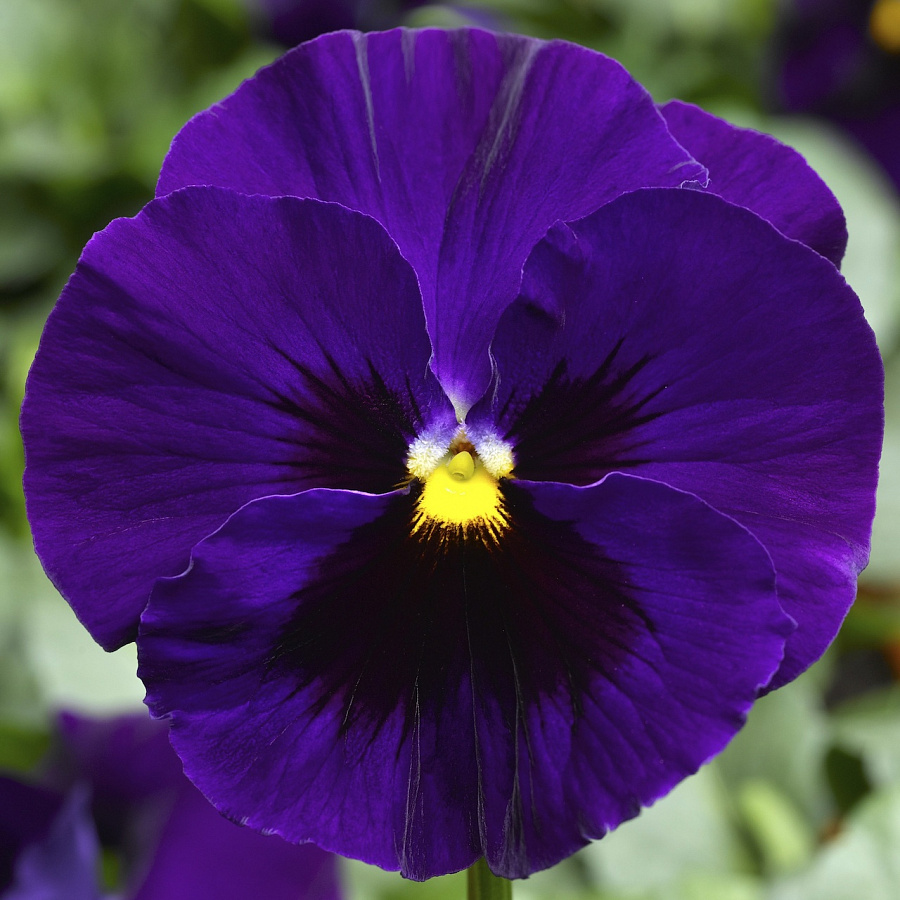 Виола крупноцветковая колоссус дип блю виз блотч - это удивительное растение, которое поразит вас своей красотой и изысканностью. Ее стебель прочный и устойчивый, достигает высоты 10-12 см, что делает ее идеальным выбором для групповых посадок. Цветки этой виолы имеют уникальную окраску - синий-черный, размером 7-9 см, что придает им особую загадочность и привлекательность.