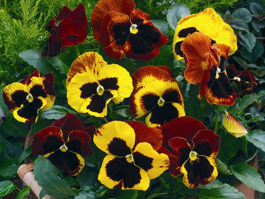 Виола крупноцветковая маммот он файр - это настоящий огненный фейерверк в вашем саду! Ее бордово-желтые цветы радуют глаз своими яркими оттенками и невероятной красотой. Это растение достигает высоты 15-20 см, идеально подходит для групповых посадок, создавая удивительные композиции.